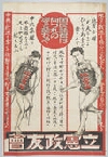 (中央)国民諸君は何づれの姿を望むや 地租ヲ市町村ニ移セバ恒久財源ヲ得テ市町村民ノ負担ガ軽クナリ従ッテ地方ハ発展ス 地域セマキ町村ニ対シテハ例外ヲ設ケ教員ノ俸給ヲ補助ス (右)地方に財源を与ふれば完全な発達は自然に来る 地方分権丈夫なものよひとりあるきで発てんす (左)中央集権は不自由なものよ足をやせさし杖もらふ 中央に財源を奪ひて補助するは市町村を不具者にするもの (下)立憲政友会