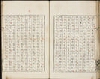 徂徠山房罫紙・嵩山房罫紙寄合書 書式: 左右双辺(20.7 x 14.8 cm.) 10行 白口墨印罫紙 毎行20字 版心「嵩山房梓」寄合書, 罫紙数種あり ただし第21冊第1丁, 第26冊第1丁, 第27冊第1至8丁, 第11丁裏至14丁, 第29冊第1至18丁自筆 四周単辺(18.9 x 13.7 cm.) 9行 中黒口墨印罫紙 毎行17字 下象鼻「徂徠山房」 書入: 朱墨藍校改 印記: 「蘐園/藏板」 闕第1冊第1・2丁, 181@67@1と同じ由来